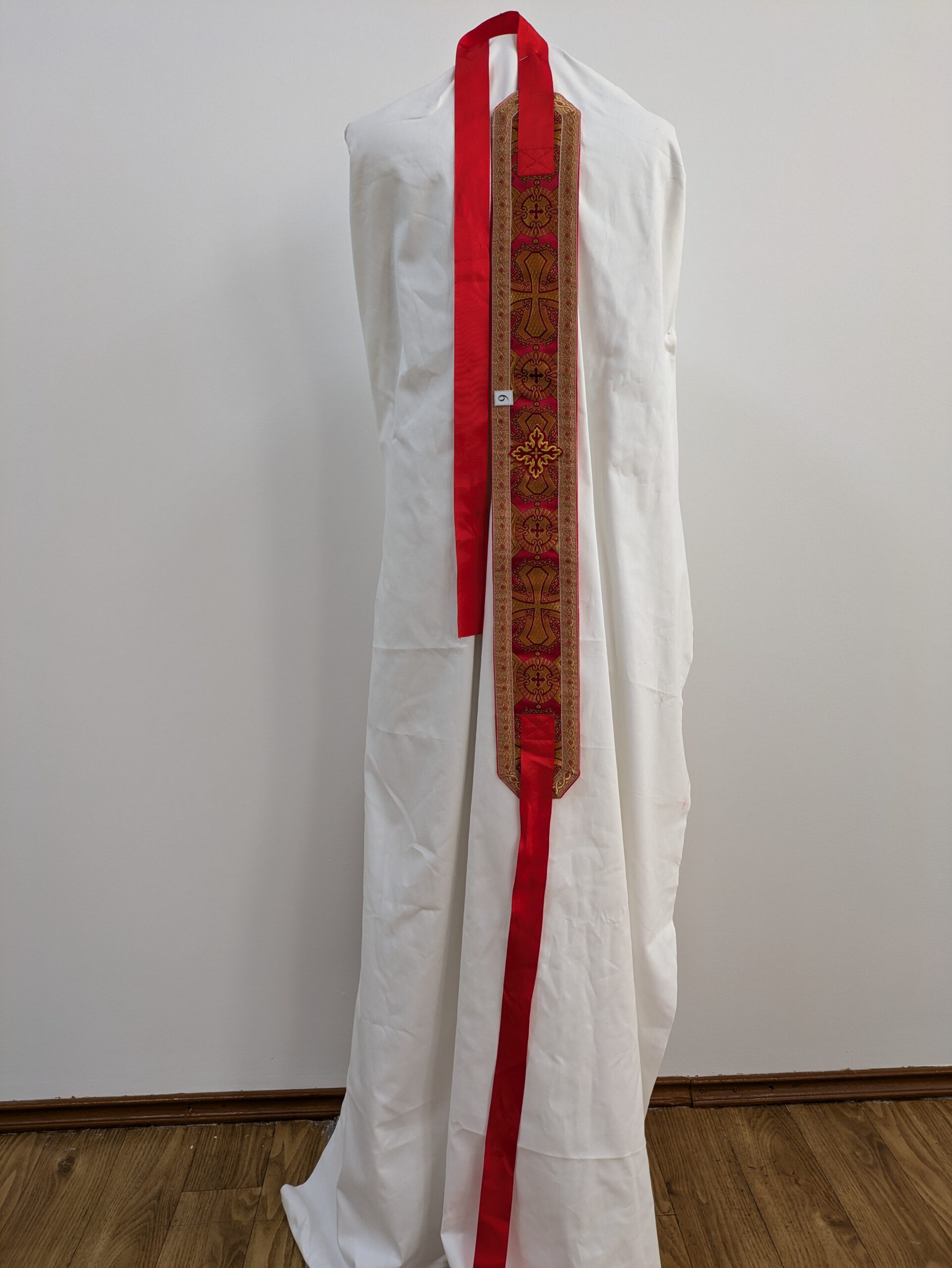 Piesa reprezintă o fâșie îngustă de material textil din brocard, model preoțesc, de culoare roșie cu auriu, prelungită cu două panglici de culoare roșie, cu care preotul se leagă în jurul mijlocului peste stihar și epitrahilul, pentru a nu-l încurca în timpul săvârșirii Sfintelor slujbe. Pe centrul brâului este cusută o broderie sub forma crucii.