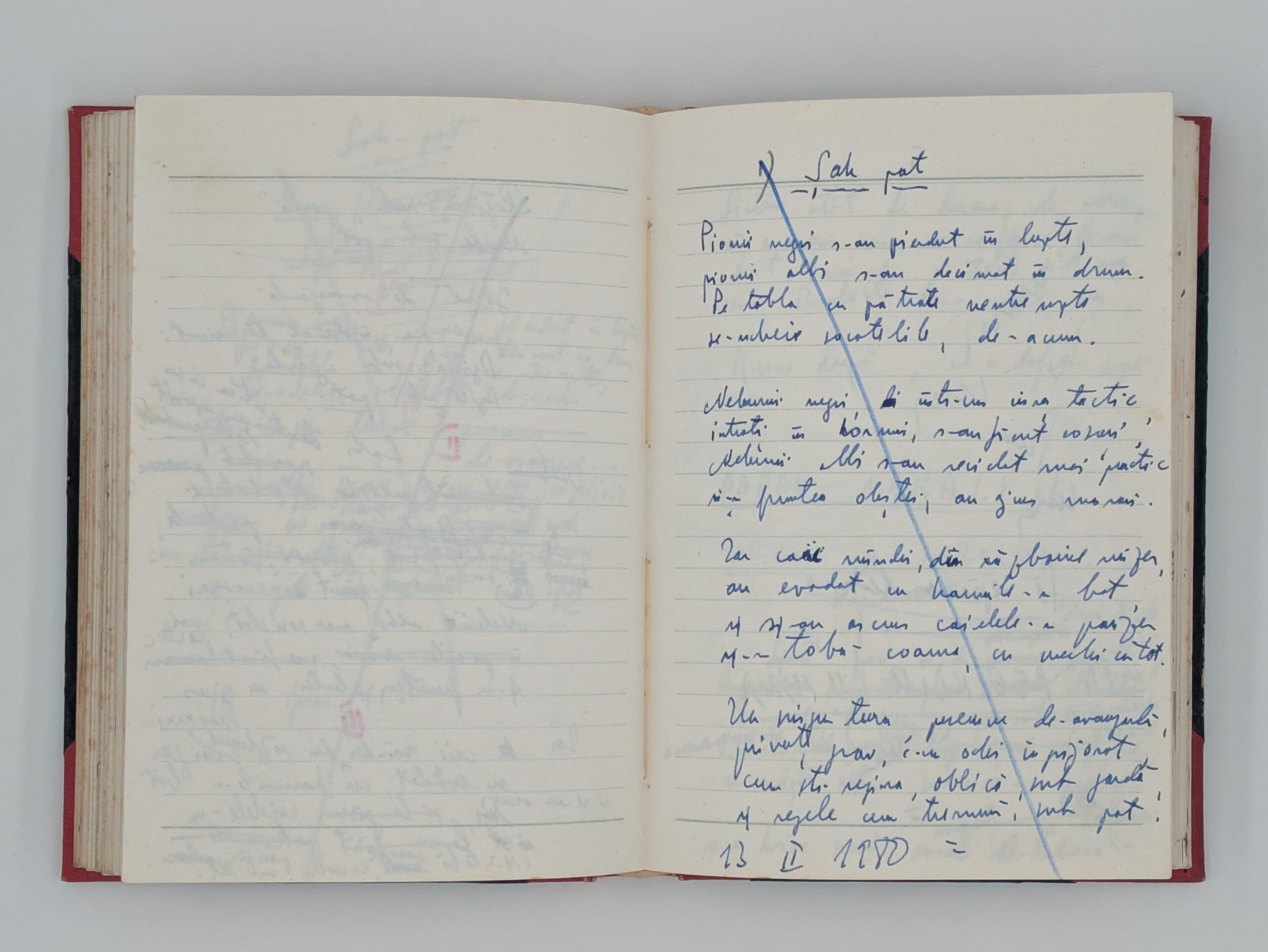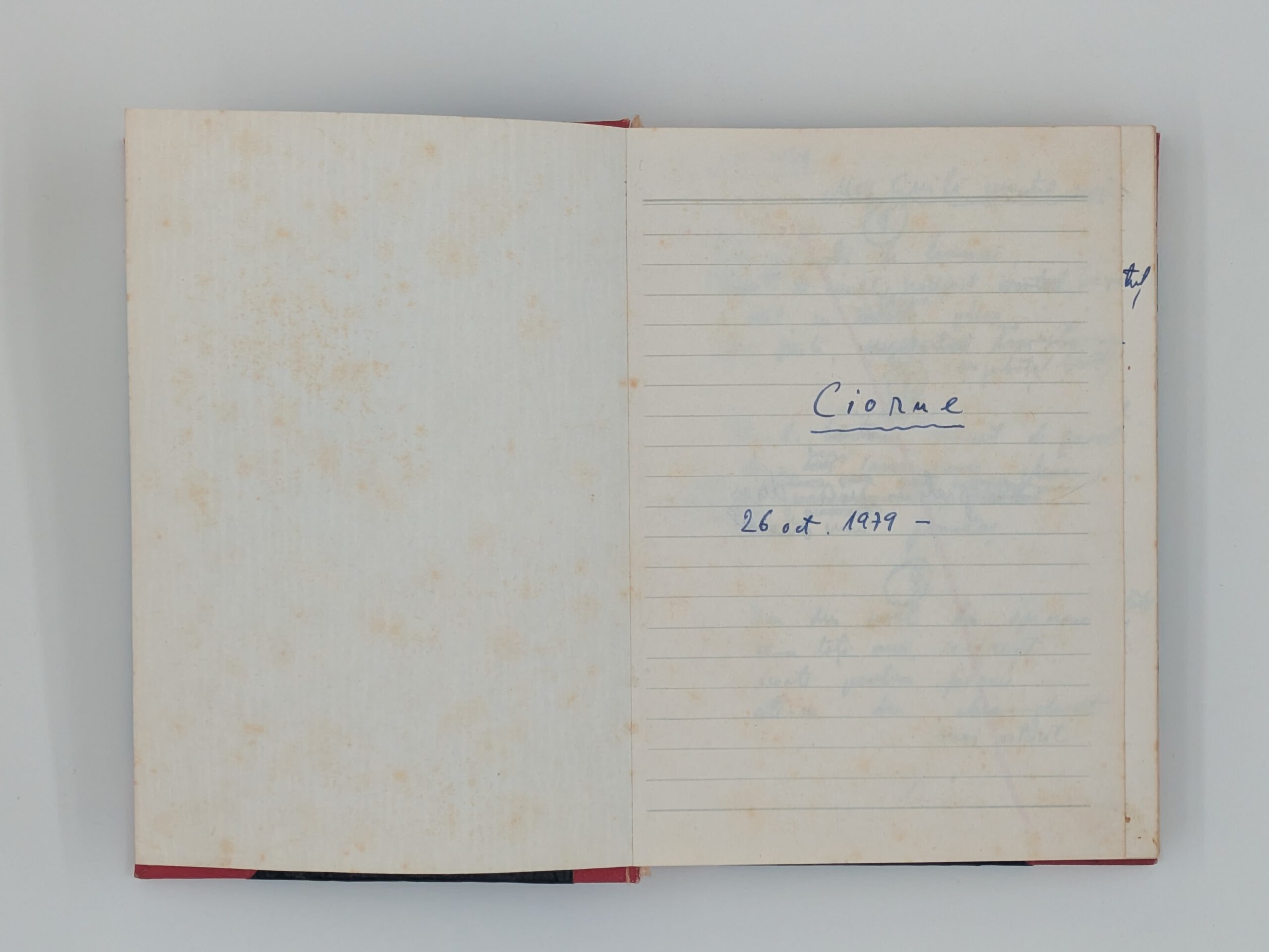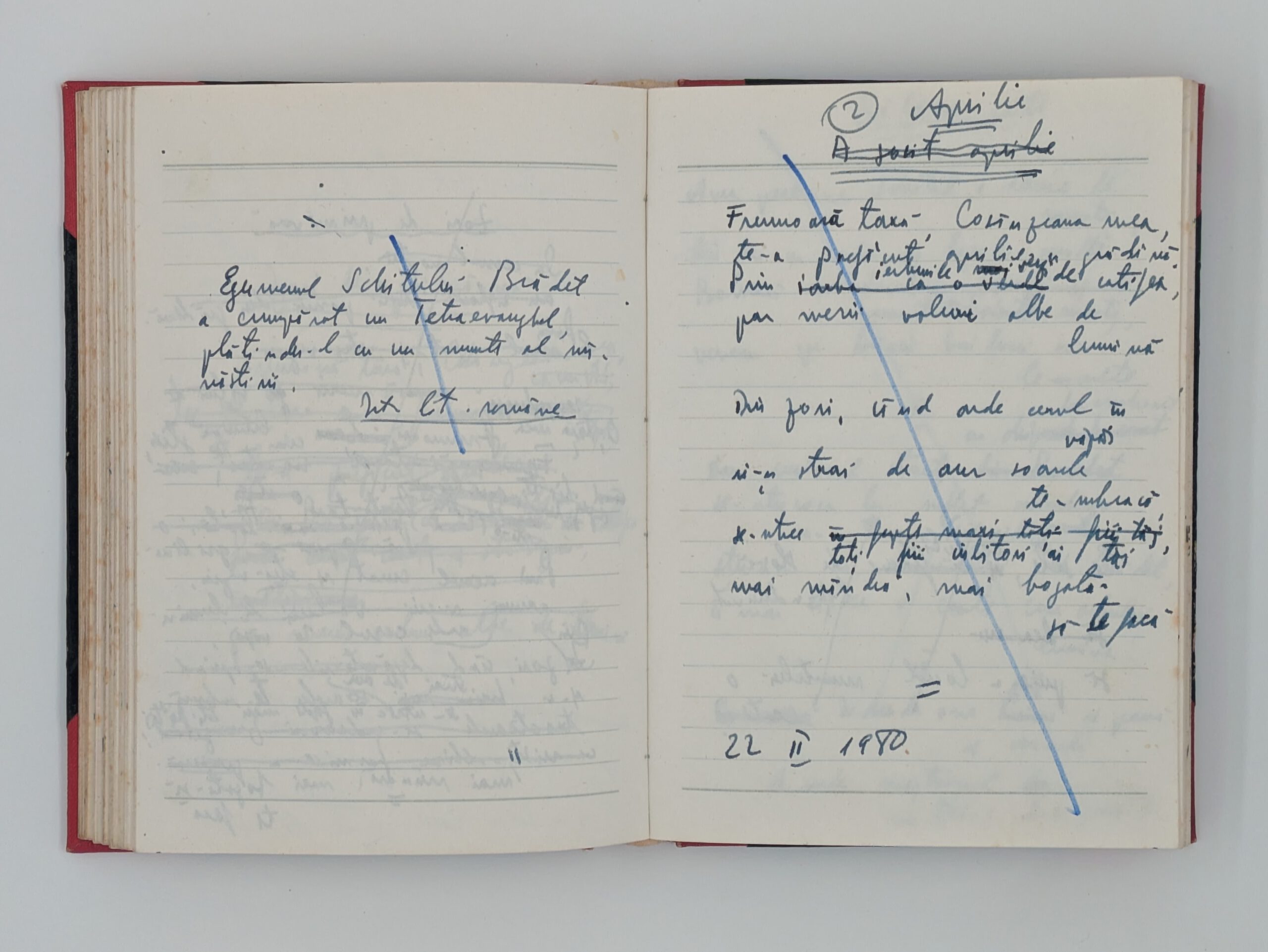 Piesă de formă dreptunghiulară, realizată din foi albe liniate. Coperta este confecționată din carton de culoare neagră, cu cotorul și colțurile roșii. Manuscrisul cuprinde versuri compuse de Andrei Ciurunga, scrise cu cerneală albastră și neagră, în perioada 26 octombrie 1979 – 17 octombrie 1980. Filele nu sunt numerotate.