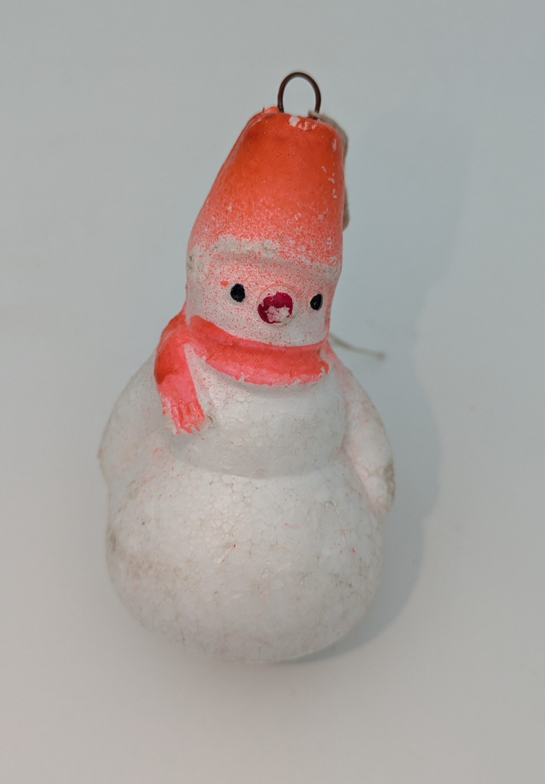 Decorațiune pentru brad din polistiren de culoare albă. Este o figurină stilizată a unui om de zăpadă cu căldare pe cap și fular la gât. Căldarea și fularul sunt vopsite cu culoarea roșu-portocaliu. Fața este pictată cu vopsea roz pal, ochii sunt negri, nasul – roșu. În partea de sus o cheotoare din metal, pentru a o atașa la pomul de Crăciun.