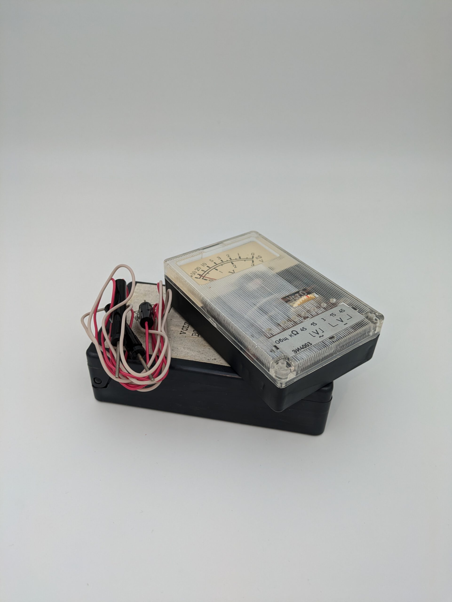 Un dispozitiv de formă dreptunghiulară (Î: 2,6 cm; L: 9,7 cm; LA: 6,1 cm). Are o carcasă transparentă, un indicator cu săgeată și un comutator pentru selectarea modului de măsurare. Scala dispozitivului are diviziuni pentru măsurarea tensiunii și rezistenței. Este conectat la circuite prin două borne cu șurub, poate funcționa în diferite moduri. Dispozitivul este așezat într-o cutie de plastic cu capac detașabil, în care se mai găsește un pașaport în rusă și romănă, două fire de conexiune (L: 75,5 cm) cu conectori. Pe capac, din exterior: logoul uzinei și inscripții în limba română și rusă: data eliberării și data ambalajului (09.96). Acest dispozitiv este destinat lucrărilor de laborator la lecțiile de fizică, pentru măsurarea tensiunii (continue și alternative), uneori a curentului și a rezistenței.